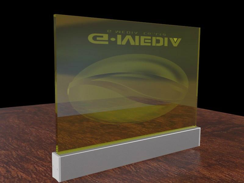 standard 310mm wide x 205mm high x 8mm high transparent acrylic panel wtih logo, graphics,text 3D Laser inner engraved. also accpet any other shape and custom size acrylic panel.