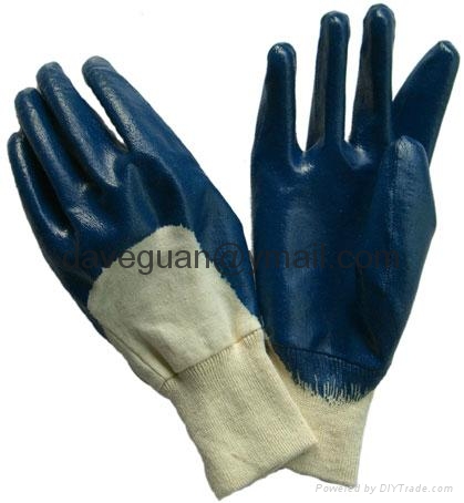 Cotton jersey liner with blue nitrile half coating,kint wrist